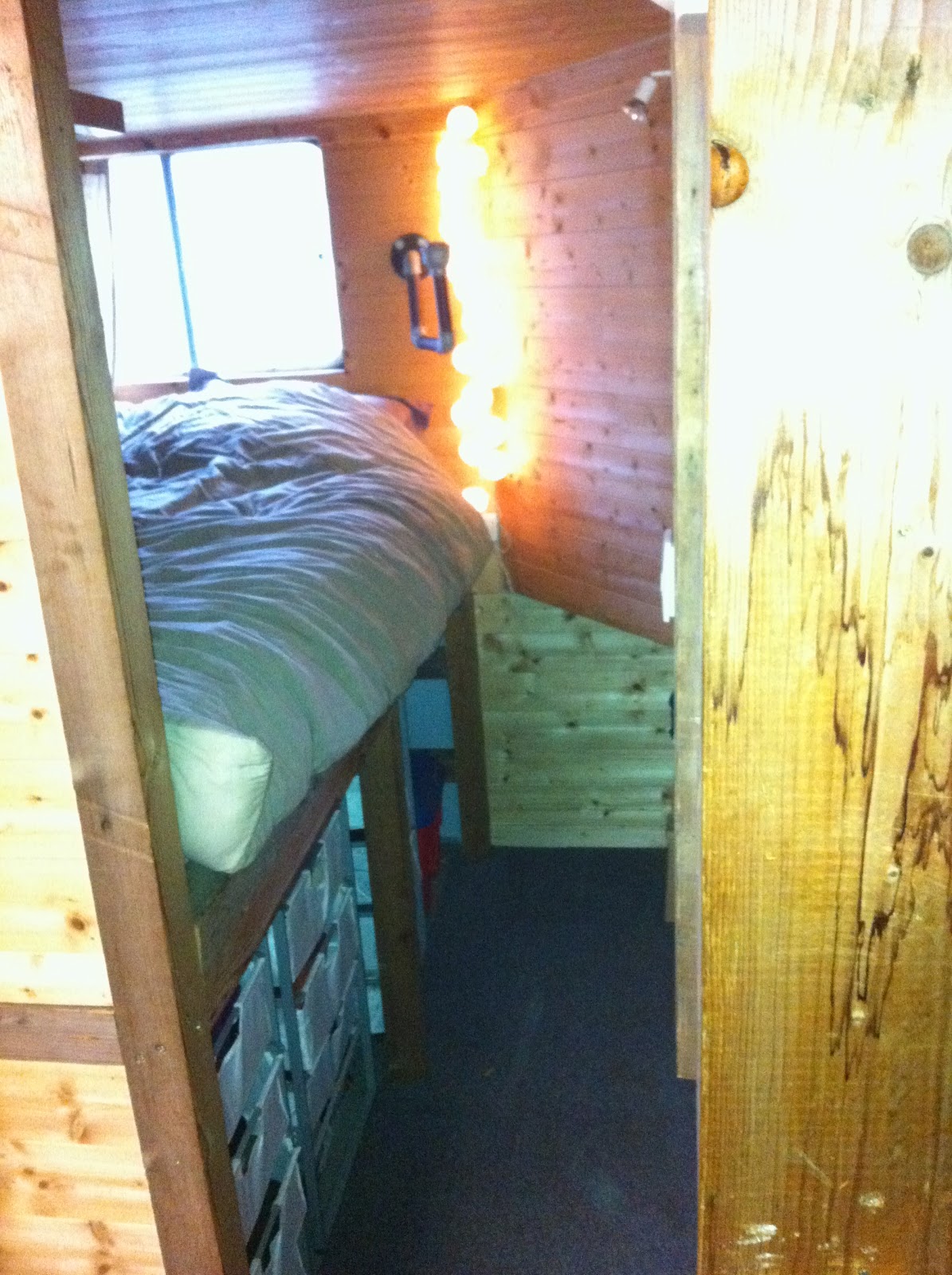 Cabine de couchage, lit de 2000x1400 en hauteur avec rangements en dessous