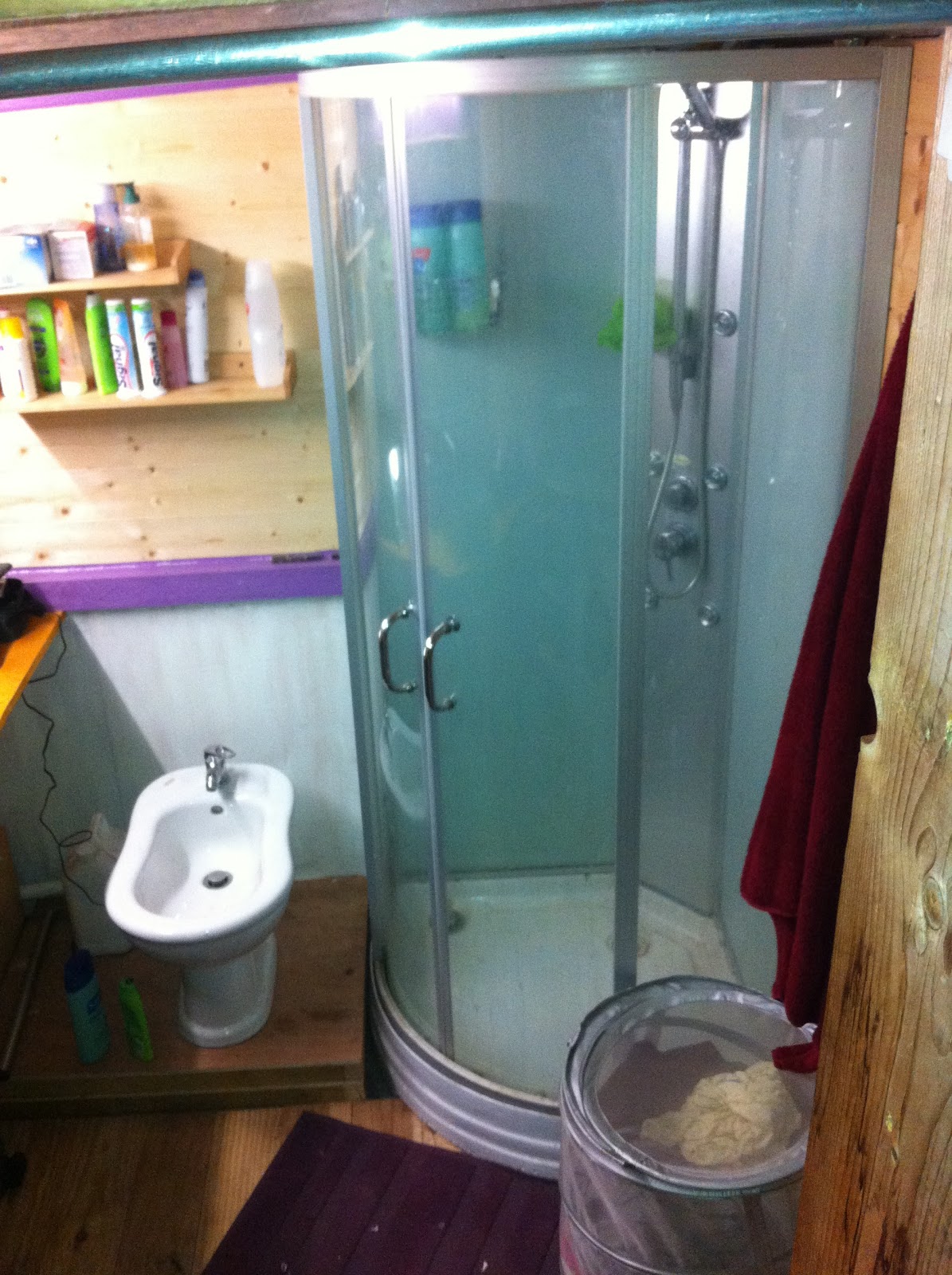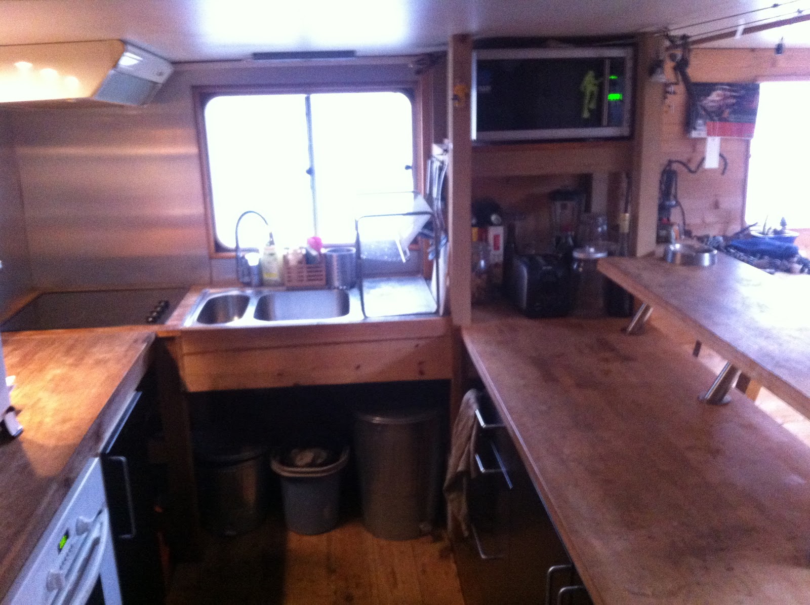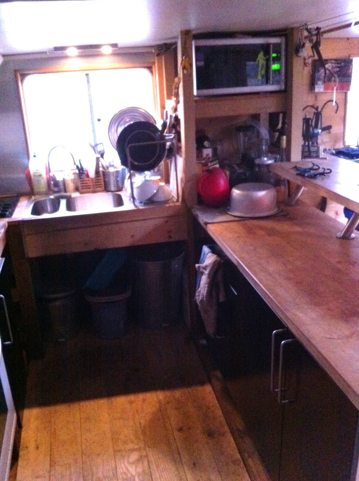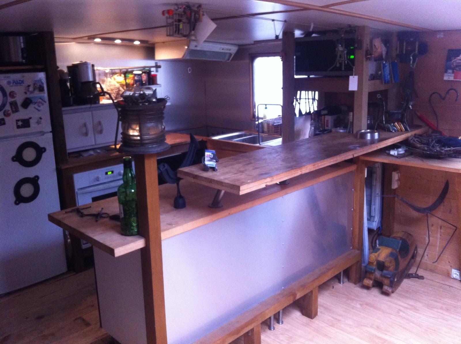 L'espace sur le cote droite correspond au creux en dessous de la timonerie et sert de rangement et pour les machines